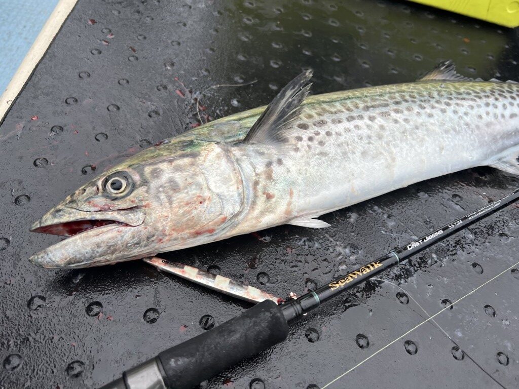 1つは、他魚種の可能性。水深20m前後のエリアでサワラを狙う場合はそうでもないかもしれませんが、ディープを狙う場合はサワラだけでなく他の魚種が交ざる可能性も十分あるんですね。