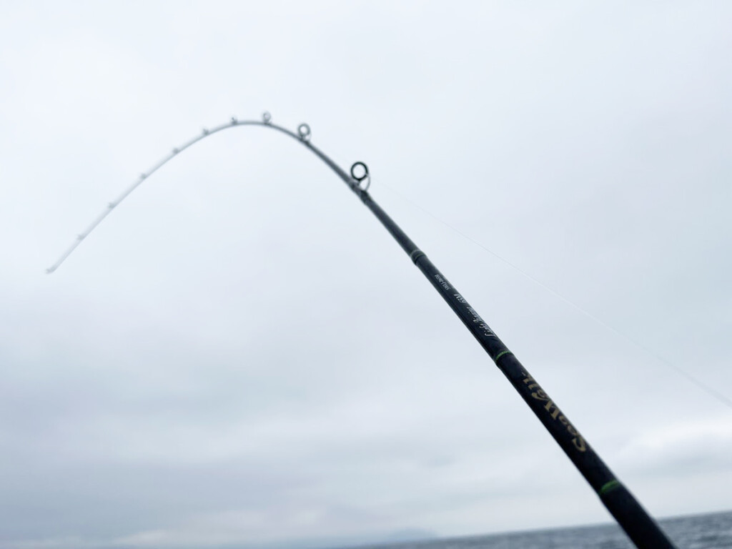 背負えるジグのウエイトが表記上60~150gと親和性が高く、ティップからベリーにかけてはマイルドな調子ながらバットは強靭でブレードジギングに良さげ。またスピニングと同シリーズのため、比較しやすいというのもセレクトした理由の1つ。