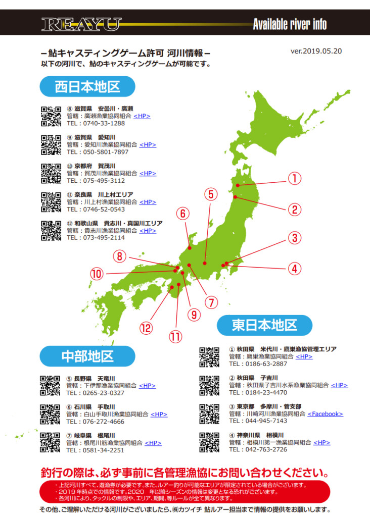 そしてルアーで鮎釣り・ルアータックルでの鮎釣りはできる河川、できない河川があります。事前に各漁協に確認したうえで釣りを行ってください。