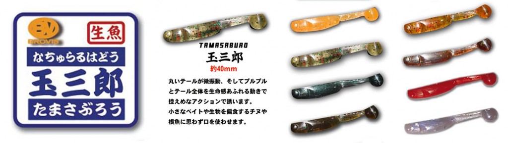 小さいボールテールのついた小型ワーム。シャッドテールが「動」ならば、これは対極の「静」といえます。静かに動きを極力抑えたアクションですが、小さなテールが非常に細かい微振動を発生させて誘います。食いシブる場合にはジグヘッドと組合せてシルエットを小さくして食わせます。リフト&フォールでショートバイトが多い時などにも効果的です。ちなみにテストではジグヘッドのセッティングでアジが爆釣でした(笑)。