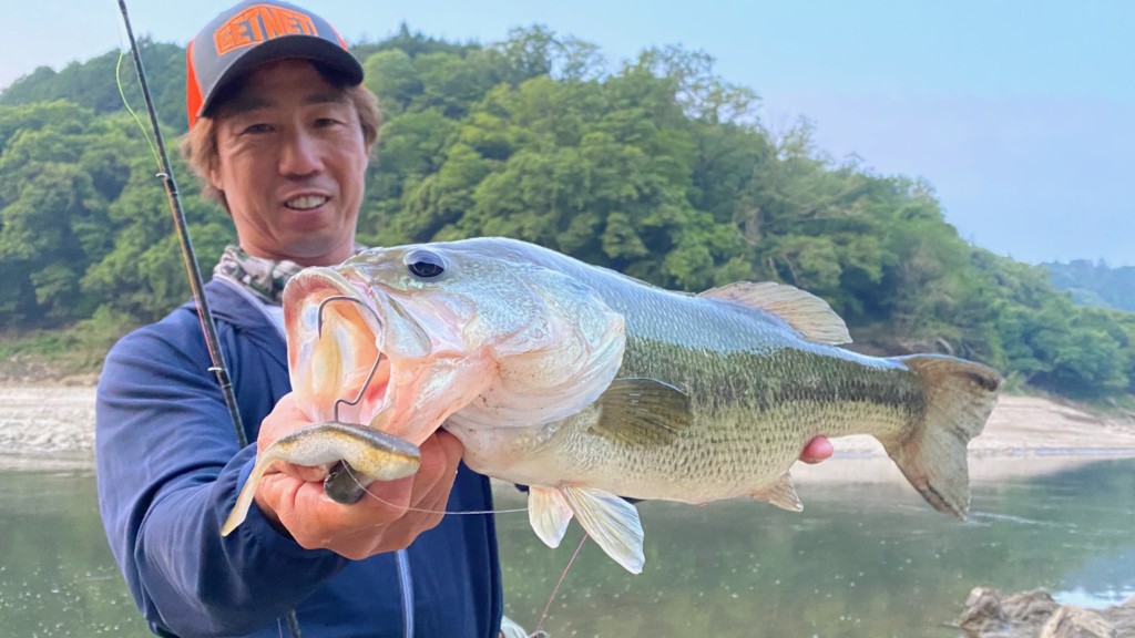 近年、琵琶湖ではブルーギルの数が激減しており、バスが捕食するターゲットもエビ類は変わりませんが、コアユやハス、そしてワカサギといった回遊性の強いベイトに依存せざると得ない状況となってきました。
