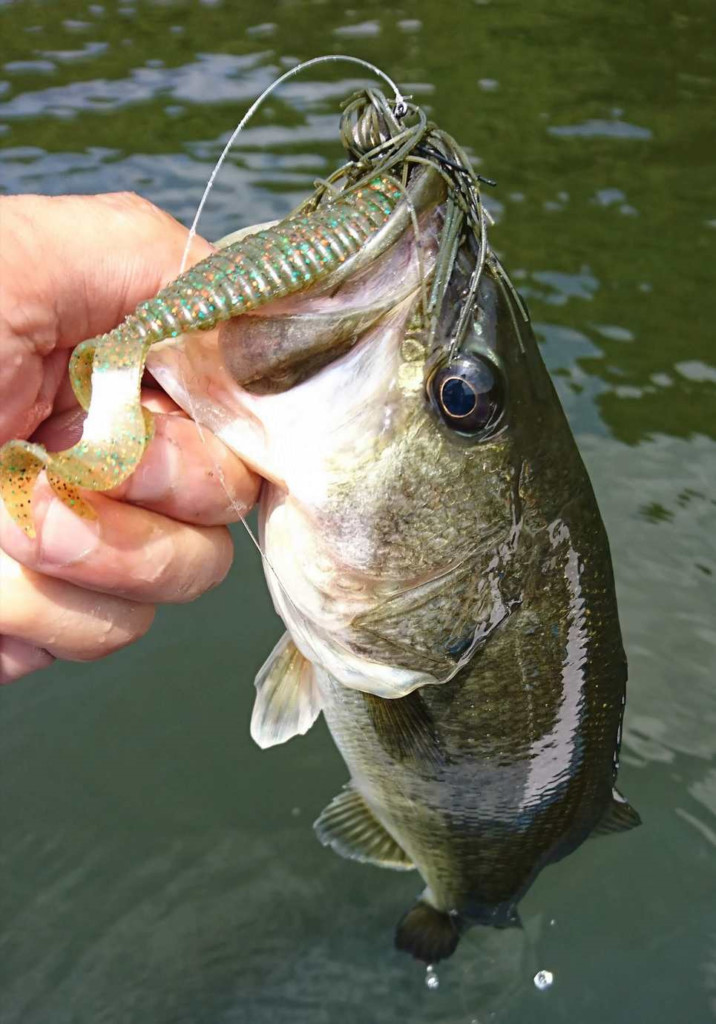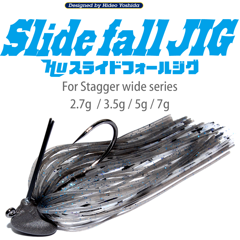 3.5g~5gのテキサスでやるのもいいいのですが、おすすめなのはワイドの動きを生かすジグとしてリリ-スしている「スライドフォ-ルジグ」です。