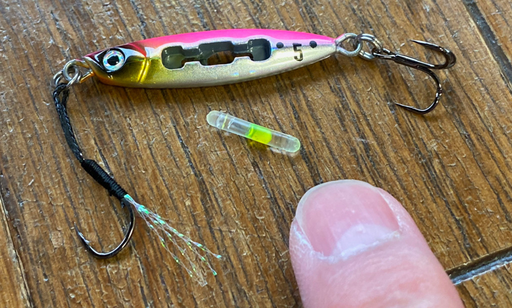 一般的には、小さいジグを使うとアピールが落ちがちですが、「メタルジャッカーMicro」に「ちもとホタル」をセットすることでアピール力不足も解消!