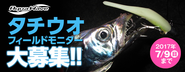 この度、募集を開始したターゲットは、これからの時期シーズンを迎えるタチウオだ。アクアウェーブでは、タチウオ用のアイテムとして、スパークやスパークヘッドに加え、今シーズンの新たなラインナップとしてスリムモデルも追加される予定。これをイチ早くフィールドで試せるのは、フィールドモニターの特権だろう。