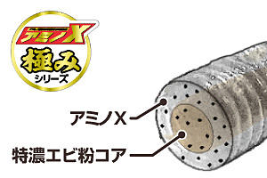 極みシリーズというと、特濃コアの外側にうまみ成分「アミノX」が含まれるマテリアルで、要するに魚にとっては‶美味しいエサ感〟がますますアップしたモデルとなります。