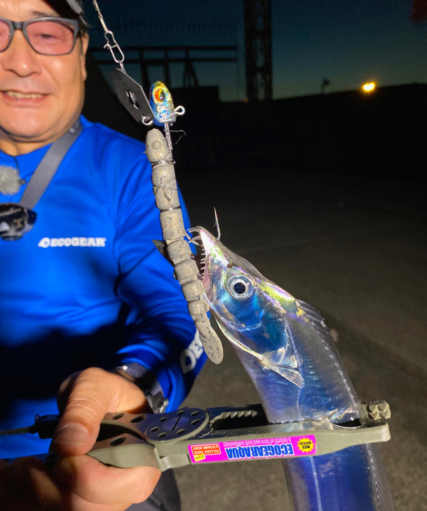 さらにリアクション誘発能力と食わせ能力を併せ持つリグなので、時合が終わって落ち着いた時間帯でもタチウオに口を使わせることも可能とのこと。
