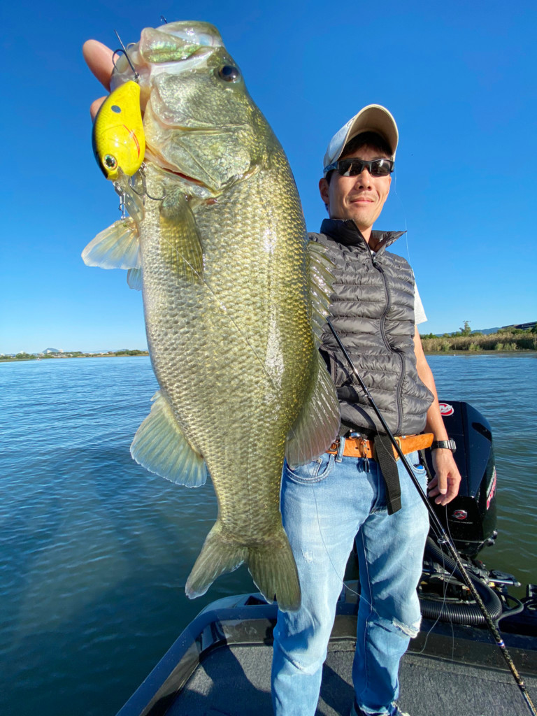 水深で言うと全て1.5m以内。ウィードがモサモサの所も全部シャロークランクで通しています。