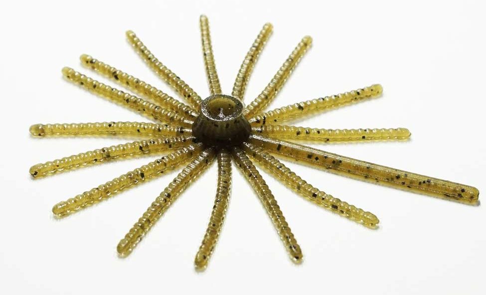 細かい凹凸のあるスカートがしっかり水を掴みシリコンやラバーとは一味違ったアクションを発生させ、スカート1本1本がブルブルと震える生命感のある動きを演出します。