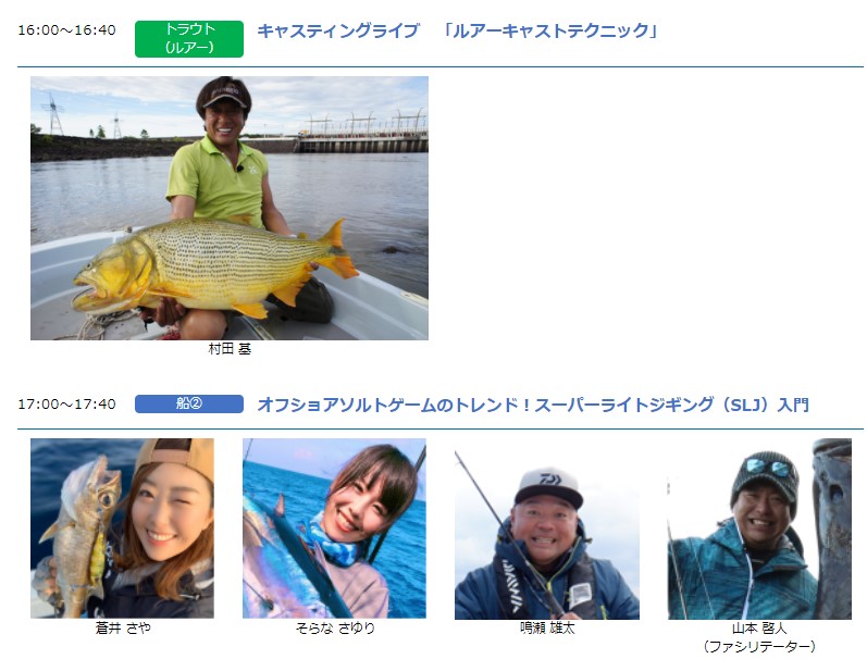 その他にも歴代アングラーズアイドルによるトークショーや美味しい釣りめしを紹介した「田中ケン 釣りめしキャンプ」なども配信。