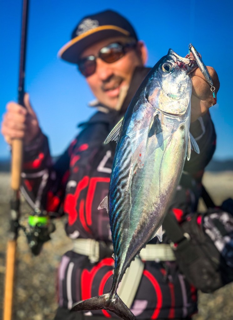 ショアからナブラめがけてジグ高速巻きでカツオ!