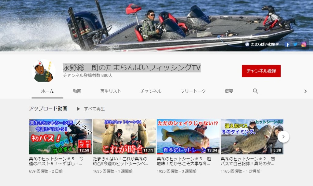見出しの通り、チャンネル名は「永野総一朗のたまらんばいフィッシングTV」。