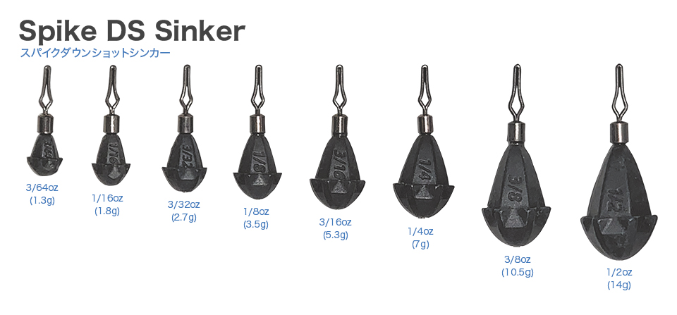 1/16~1/2ozまでの幅広いラインナップで、フィネスからヘビーダウンショットまで対応OK。