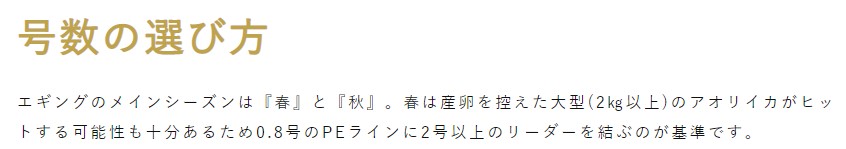 エギングを「極める」・「楽しむ」をテーマに、それぞれのラインの特長などを解説。また特長に応じて「こんな人におすすめ」という項目がそれぞれに設けられていて、めちゃわかりやすい仕様になっています。