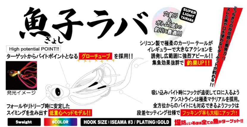 続いては堤防の様々なSWライトターゲットを狙える、業界初のマイクロタイラバ「魚子ラバ」。
