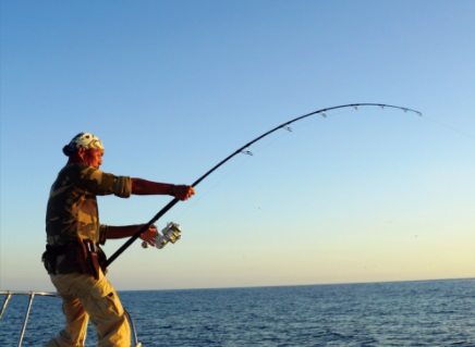 マグロのファイティングロッドの特長は、アングラーの疲労度や腰を利用した体勢に持ち込めるよう、ベンディングカーブの頂点を手前に設定することが必要となる。