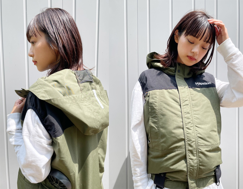 高性能ファン付きウエアを扱うブランド「サンエス」のファン&バッテリーが付属したウエアで、着用すると猛暑の中でも、ファンの力で衣服内をクールダウンしてくれるという画期的なアイテムとなっています!