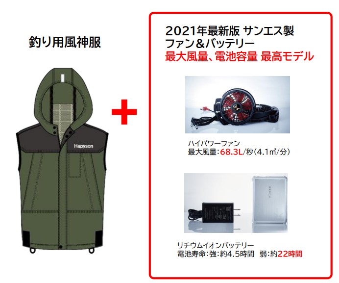 最近、釣り人の間でも流行している電動ファン付きウエアがハピソンからも登場! その名は「釣り用風神服セット」。