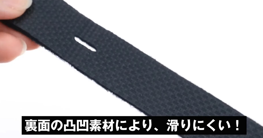 巻き始めにベルトの端にあるスリットにガイドを掛ける事でベルトが滑る事を防止し、スムーズに巻くことが可能。