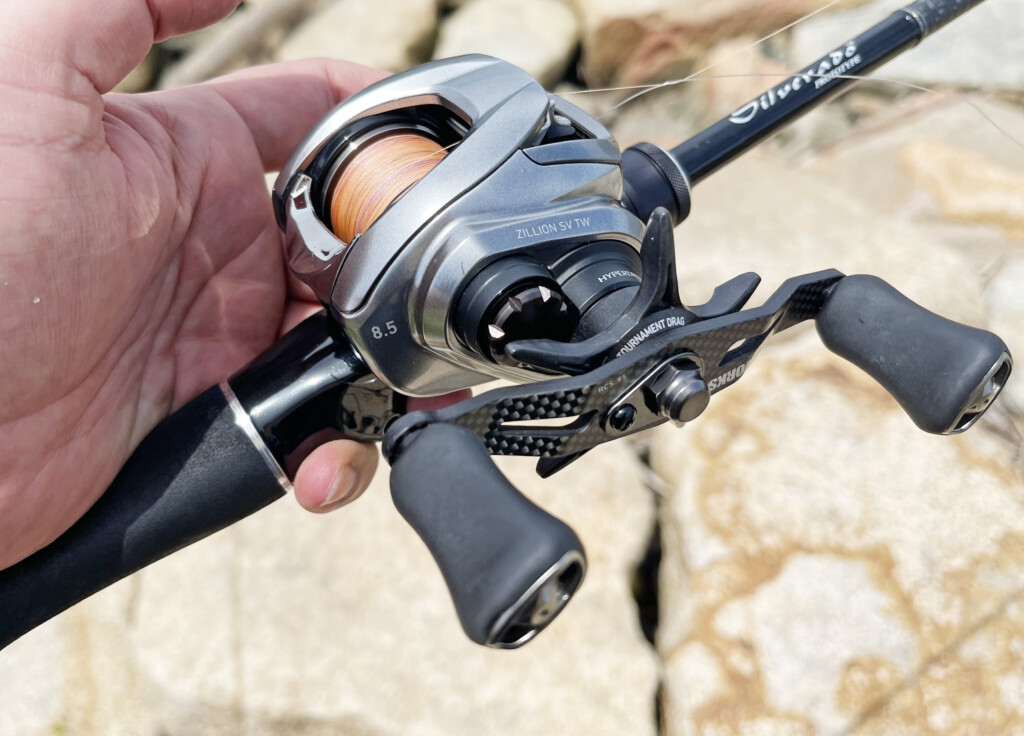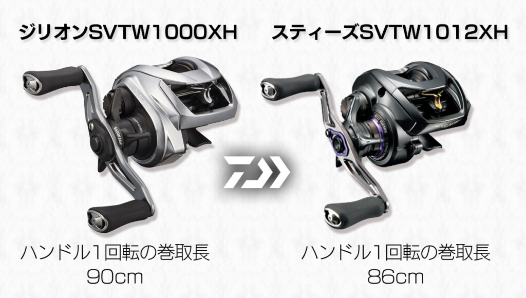 主に7gシンカー以上を遠投するシーンではジリオンSVTW1000XHやスティーズSVTW1012XHといった34mmスプール搭載機。