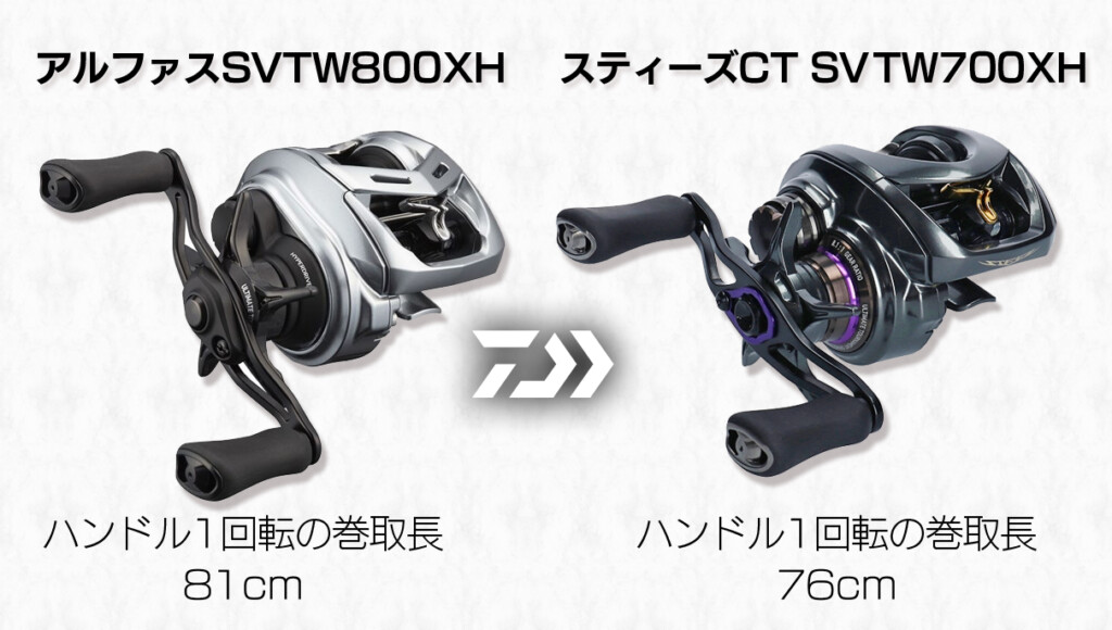 アルファスSVTW800XH (32mmスプール)、スティーズCT SV TW 700XH(30mmスプール)