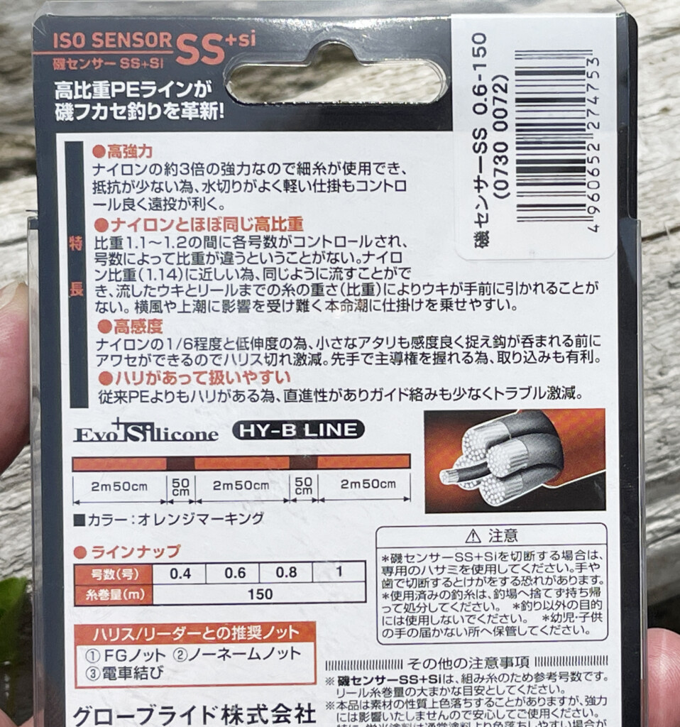 現時点では磯センサーSS+Si(ダイワ) 0.6号 (ダイワ)をメインに使用していますが将来的にはダイワから更に使いやすいPEラインをリリースできればうれしいなぁと思っています(個人的願望)。