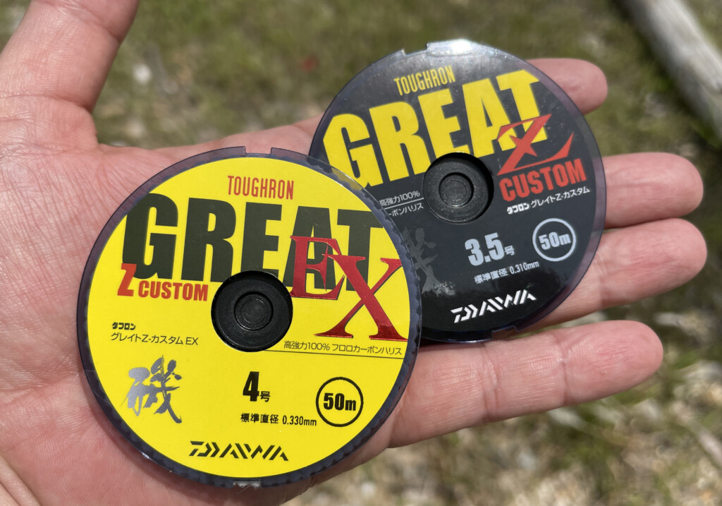 PE0.6号に合わせるリーダーは、根ズレに強いフロロ、タフロングレイトZカスタムEX【ダイワ】の3号or3.5号or4号を1ヒロ~1ヒロ半で使用しています。