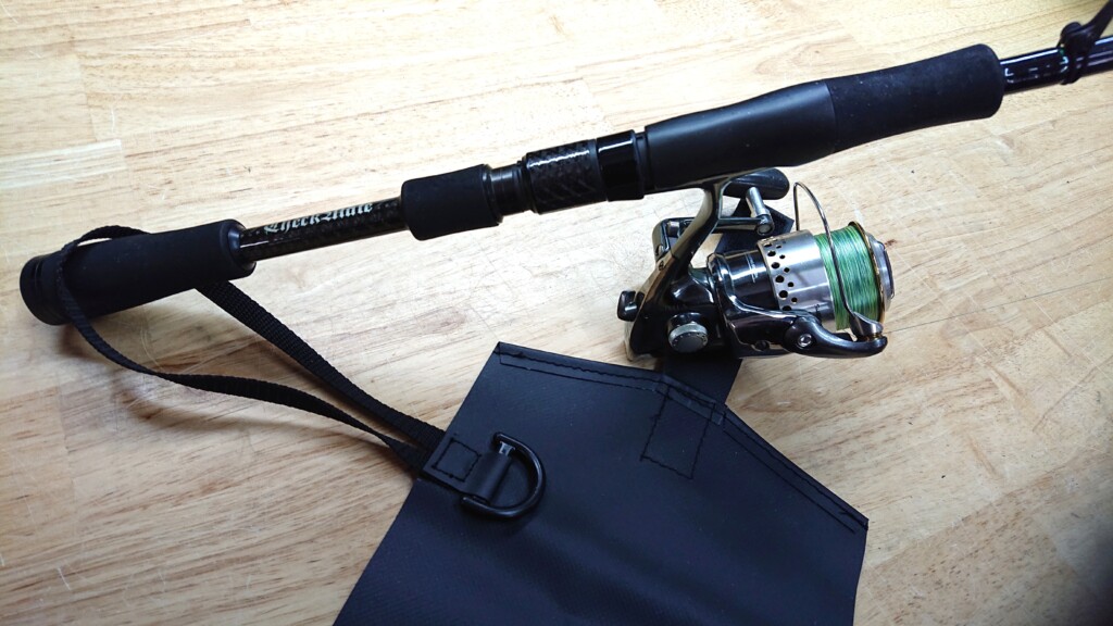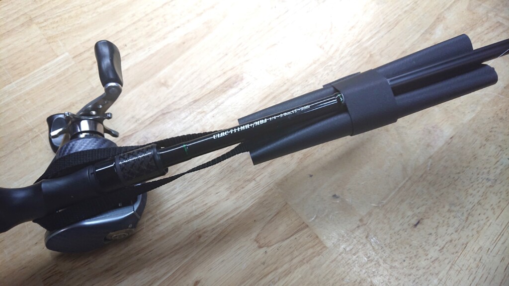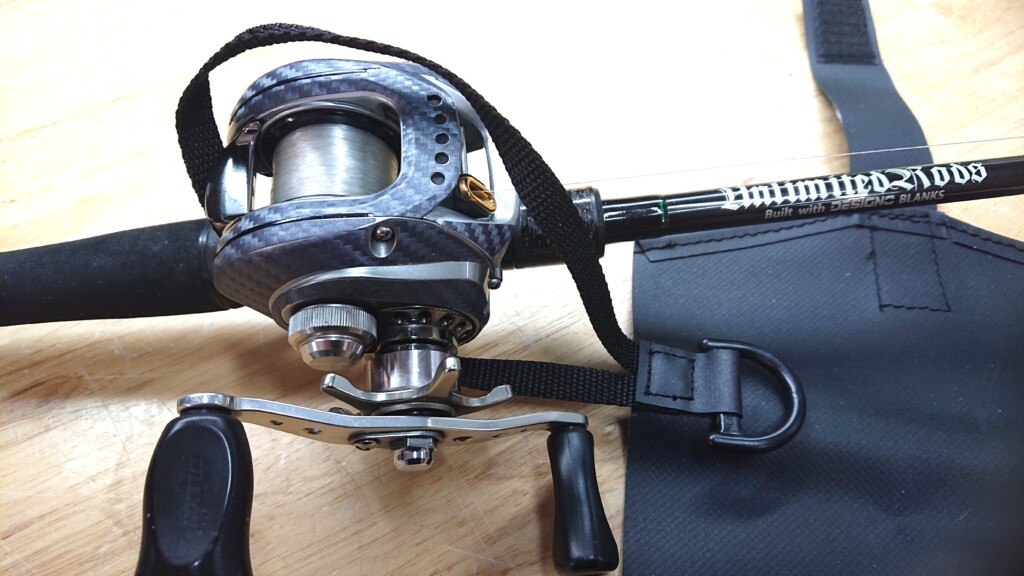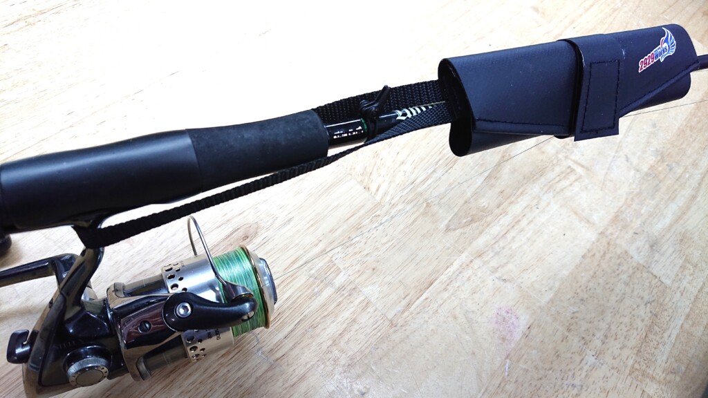 最後にラインのテンションを張り、ベルトをロッドと一緒に巻き付け完成です