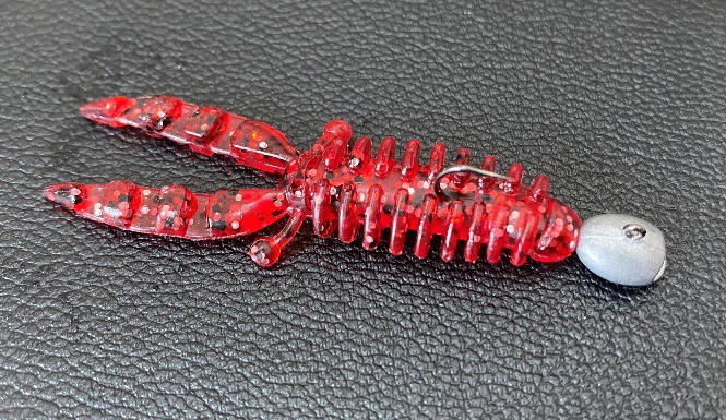 カラーはCGBFO。オレンジに見えますが、ブラックラメが入っていたり、ロックフィッシュでも定番のカラーとなっています。