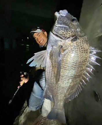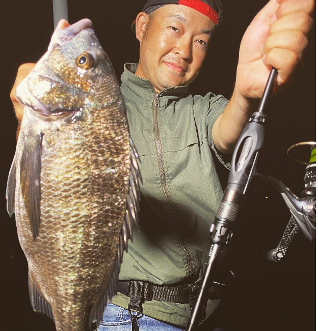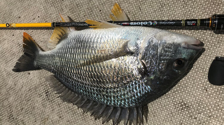 こちらも新しいソルティーステージのクロダイモデルで良型を釣っています。