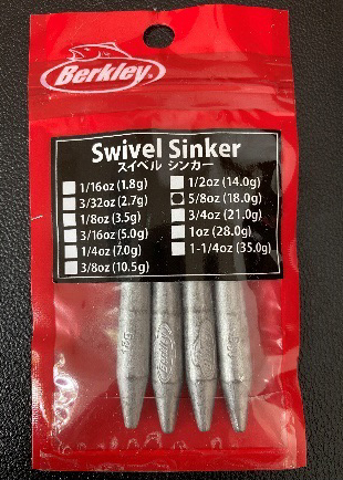 バークレイのスイベルシンカー。こちらはフリーリグにベストマッチするオモリになります。
