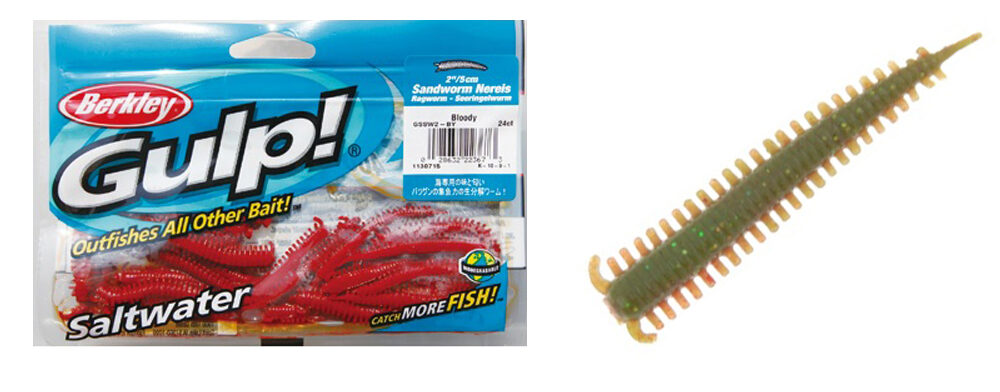 バブルスピア2.2インチやガルプ!のサンドワーム2インチがクロダイ定番のワームになっています。