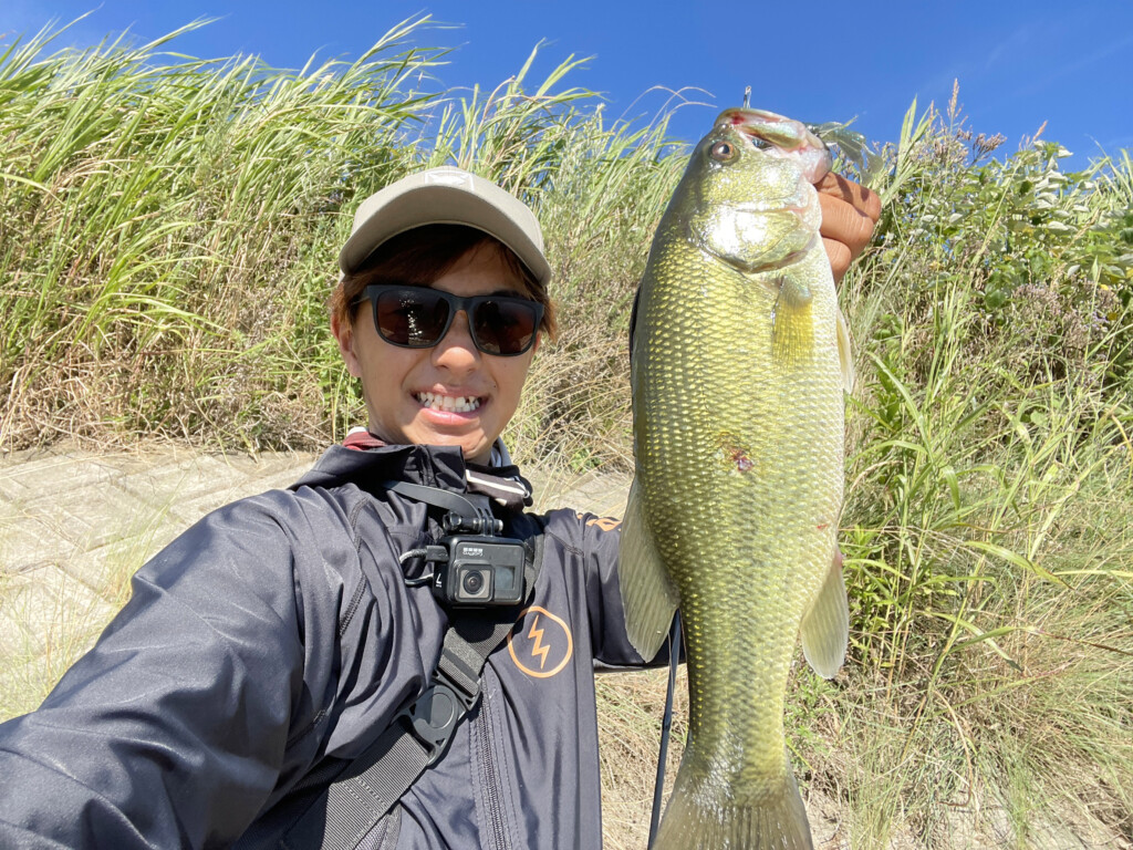 今回は浅い場所とテトラ帯を狙っていく感じでしたので、3.5g〜5gのフリーリグで攻めて遠賀川バスをキャッチできました。