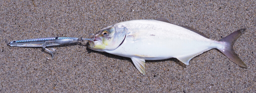 ただ、秋の深まりと共に大型青物が回遊し始めることで、70mmサイズのプラグでは飛距離やフックの強度的に対応しずらいこともあったそう。