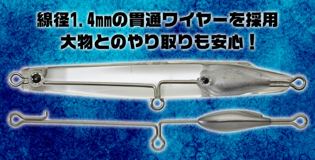 「クリスタルペンシル120S」は大物にも対応できるように、ラインアイやフックアイに線径1.4mmの貫通ワイヤーを採用。