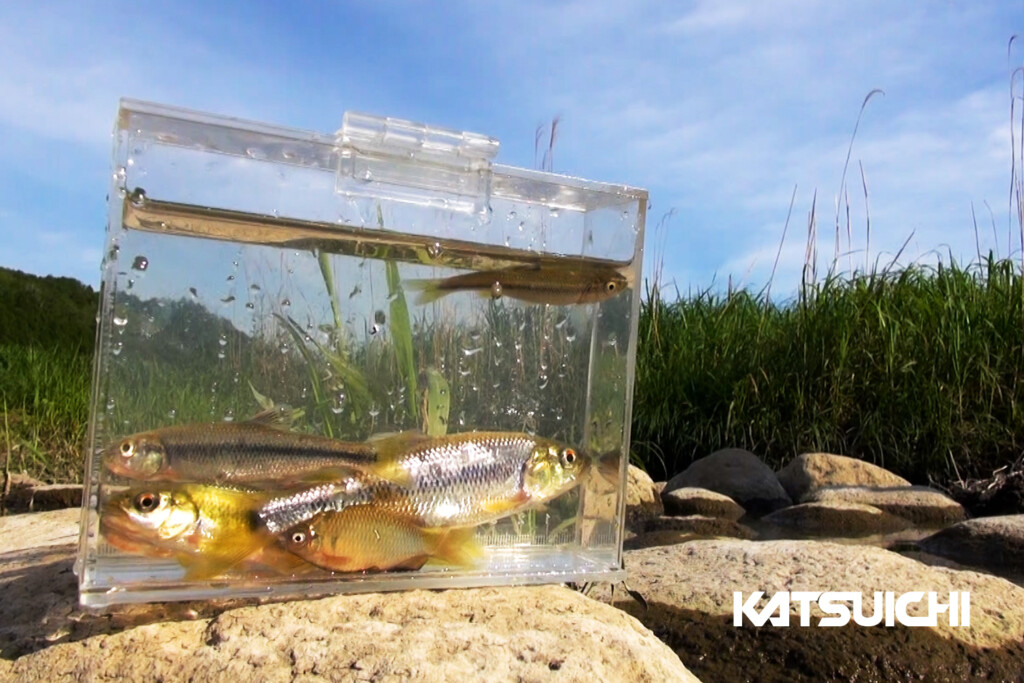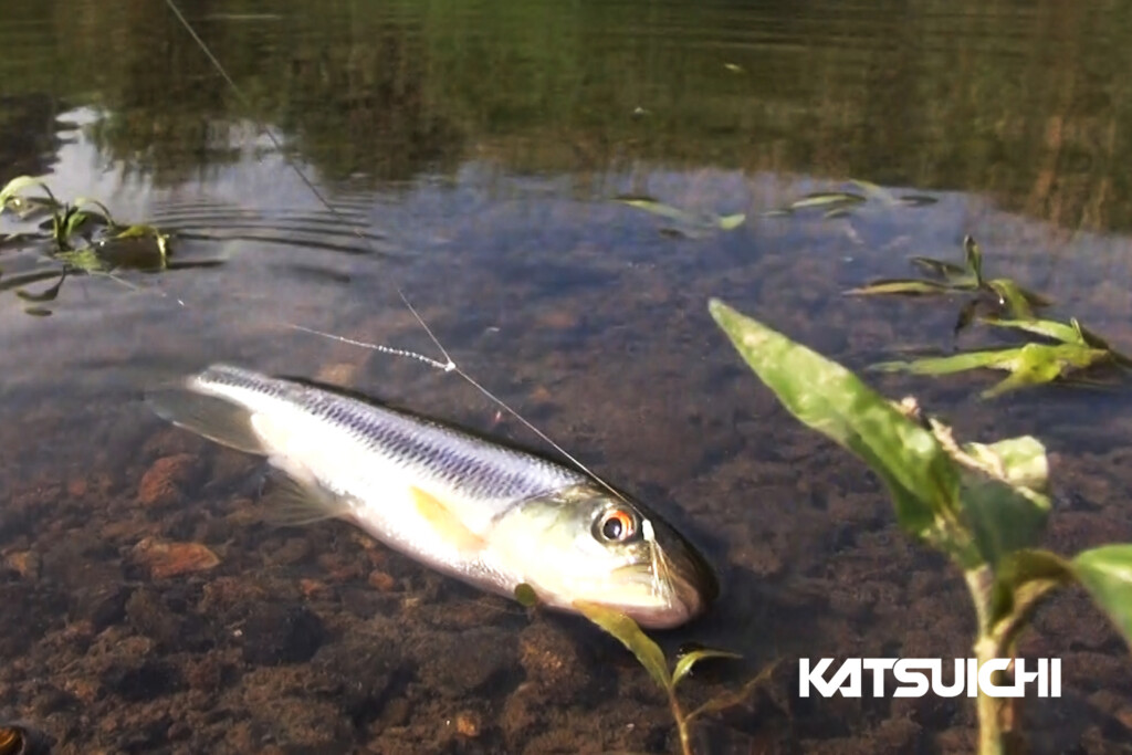 オイカワ、カワムツ、コブナ、ウグイ、いればブルーギルや小バスとか…。まぁ、小さな川虫なんかを捕食してる魚なら何でも釣れるんじゃないかっていう、ありそうでなかった仕掛けなのです。