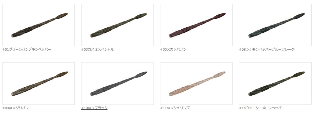 フォールの名がつくように、フォールアクションはもちろん、リーリング時はロールアクションを生み出すなど、従来のストレートワームにはない多彩なアクションが魅力となっています。