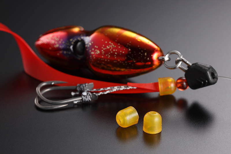 標準装備のネクタイには、海老パウダーと海老オイルを配合し、味と匂いを加えた新素材「T+(tasteプラス)ラバー」が採用されています。見た目と動き以外に、匂いでもターゲットを魅了。