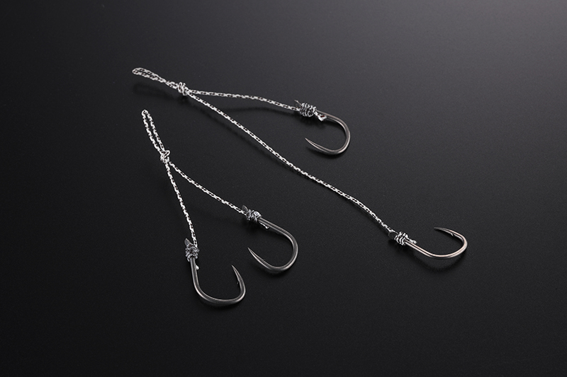 ネクタイのアクションを妨げず、刺さりバツグンなアシストフックも標準装備。サイズによってアシストラインの長さを調整。段差無し仕様は、2本のフックで口の中をガッチリと捉える事が可能。また、ヘビーウエイトの100g/120gは、大きめのヘッドに合わせて段差有り仕様が採用されています。