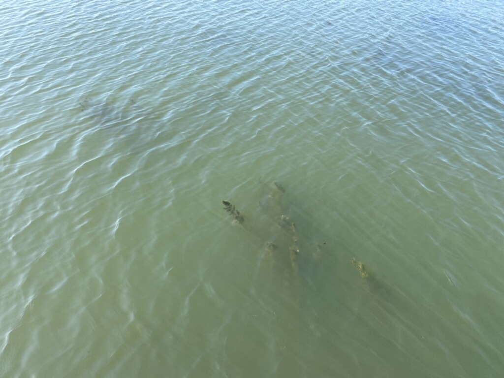 次にそのエリアに入った上で特に注目、狙っていくべきは、“茶色い土埃をまとっているかのようなカナダモじゅうたん”です。これはシャローエリアのボトムに密生したカナダモのことで、この時期枯れている…というわけでもないんですが、水中で茶色くなり、まるで土埃を被ったようになっている状態のこと。