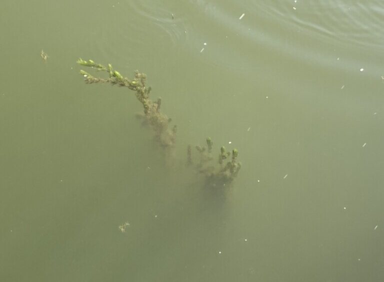 こう言ったウィードの下には、先述の「茶色い土埃をまとっているかのようなカナダモじゅうたん」が広がっている事が多く、周囲にクランクを投げると、ウィードに引っかかる感覚があるはずです。