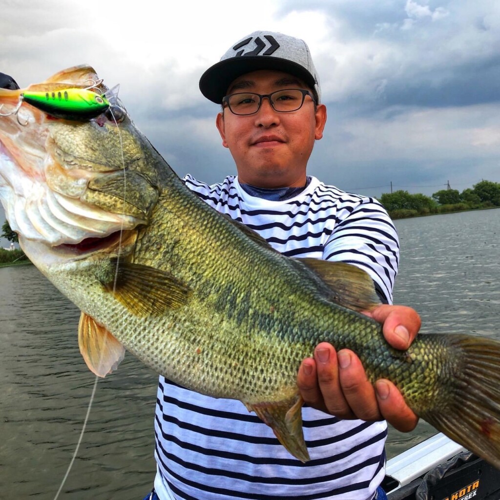 具体的には、ウィードマットやエビモが水面まで生えて目立っている所はあえて投げず、ウィードの間、間にキャストをショートピッチで決め、ボトムのカナダモウィードに当てていきます。するとウィードコンタクト時にリアクション的に食ってきます。グーンとひったくるようなバイトはデカバス特有のバイトです。