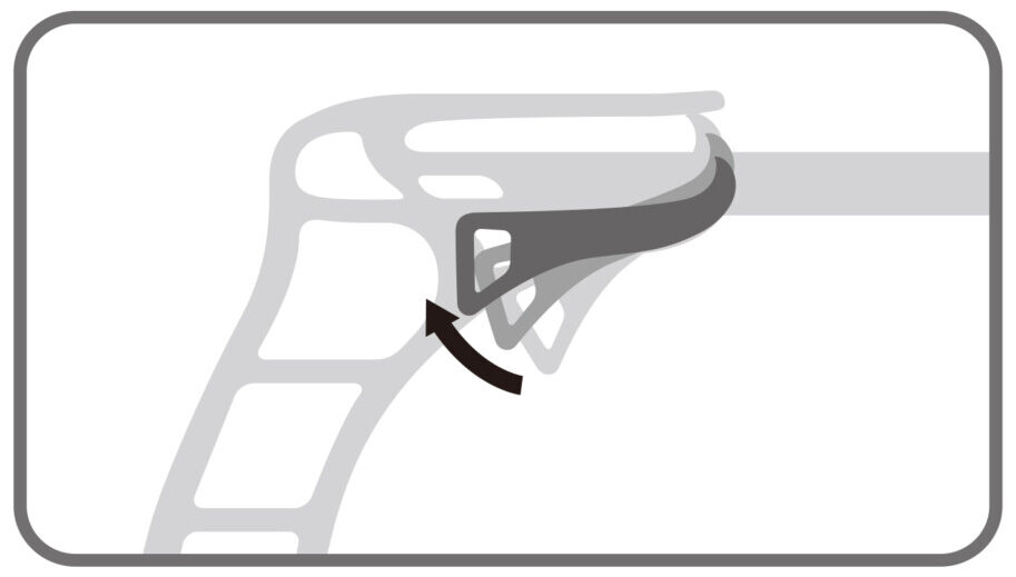 ショートガングリップ型は握りやすいだけでなく、ハンガーを活用することでベルトに装着することもできます。急な落下を防げるようにトリガーでロックすることができ、トリガーを引くと解除される仕組みに。