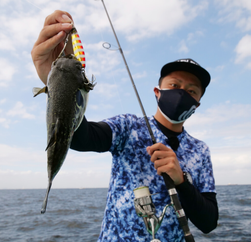 どんな魚種でもオールマイティーに狙うことができるのも、「ジャックアイ マキマキ サゴシスペシャル」の魅力です。今回も青物以外の珍客が釣れたのですが、まさかの超高級魚「トラフグ」でした(笑)。