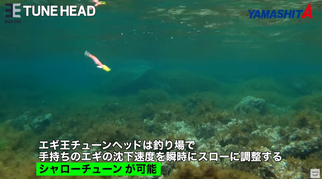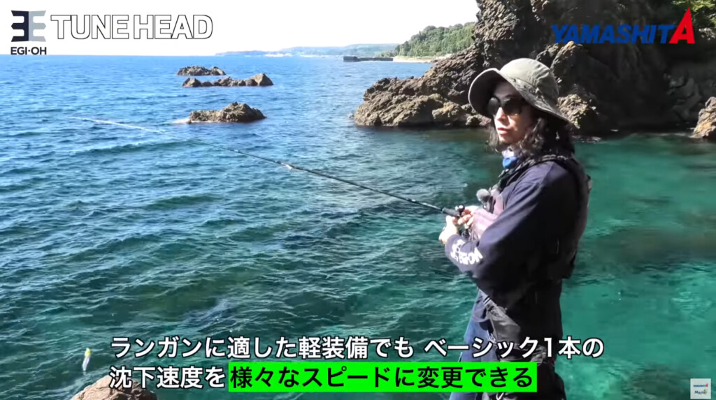 また、ランガン時にはベーシックモデル1本で、様々な沈下速度に変えられたり、通常のシャロータイプのエギより重いエギを使用してシャローチューンすれば、より飛距離を稼げたりもすると。