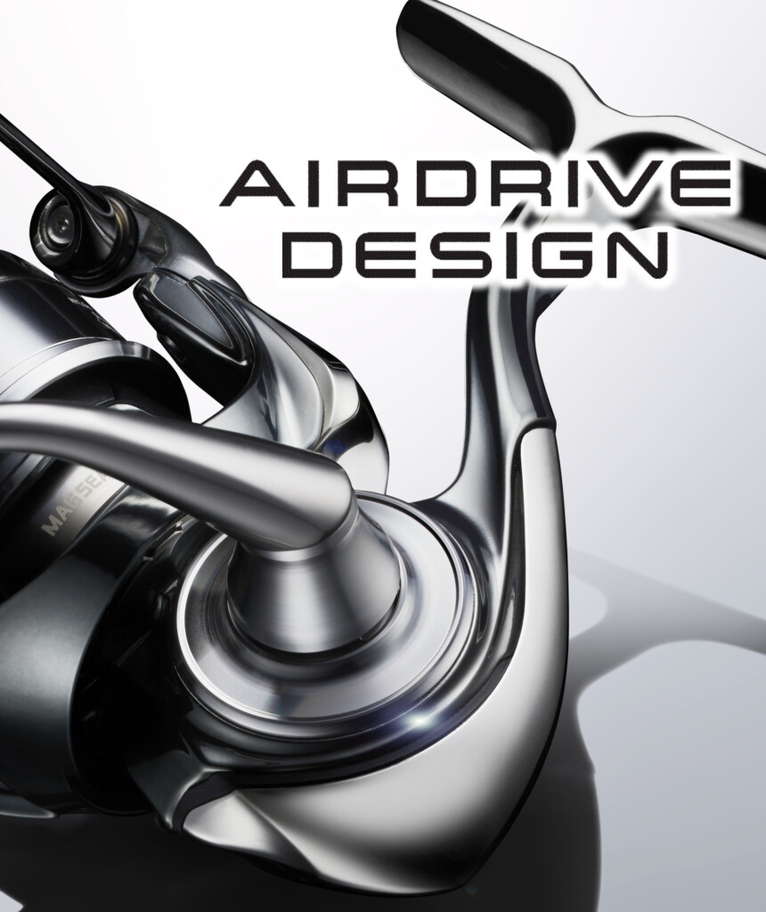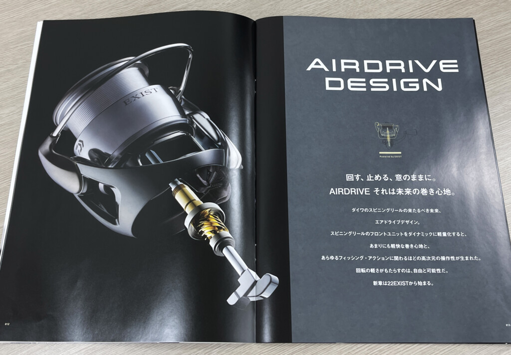 さて22イグジストですが、基幹をなすテクノロジーとして「AIRDRIVE DESIGN」をうたい、釣り人の意のままにルアーを操作することを設計思想としてかかげた次世代スピニングリールとして生まれ変わっています