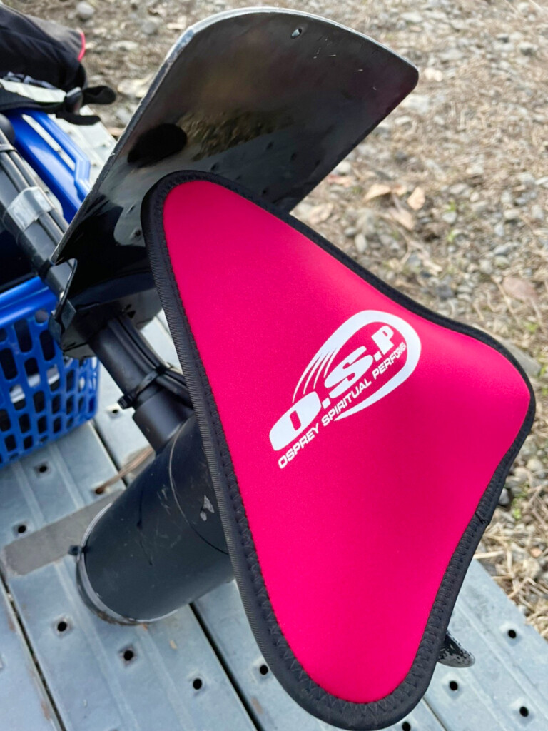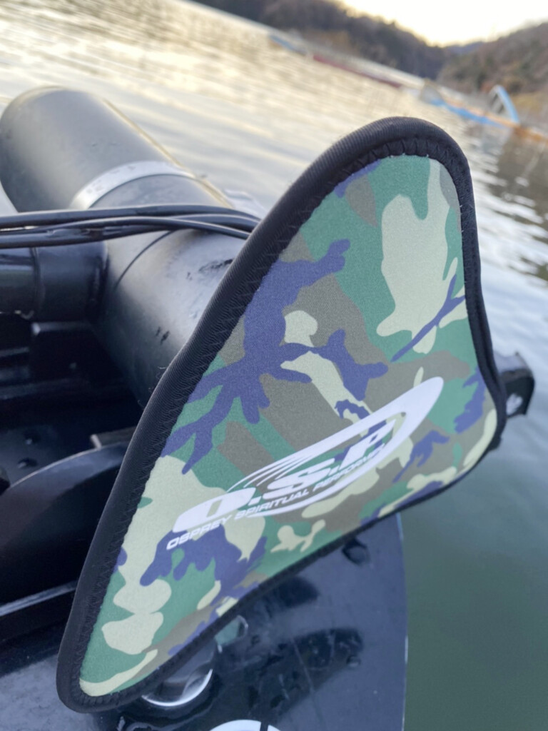 プロップを柔らかいクロロプレンゴムですっぽりカバーしてくれるので、持ち運び時やボートへ装着する際も安心。例え壊れることが少ないとはいえ、他の物と接触させてしまって、いざ破損したり大きな傷が入ってしまうと規格サイズのペラが中々入手できなかったり購入しても高価。そういった後悔を避けるためにも「O.S.Pエレキプロップジャケット」を装着しておくことがオススメです! O.S.Pロゴも大きくプリントされていて、装着していてもカッコイイですし。