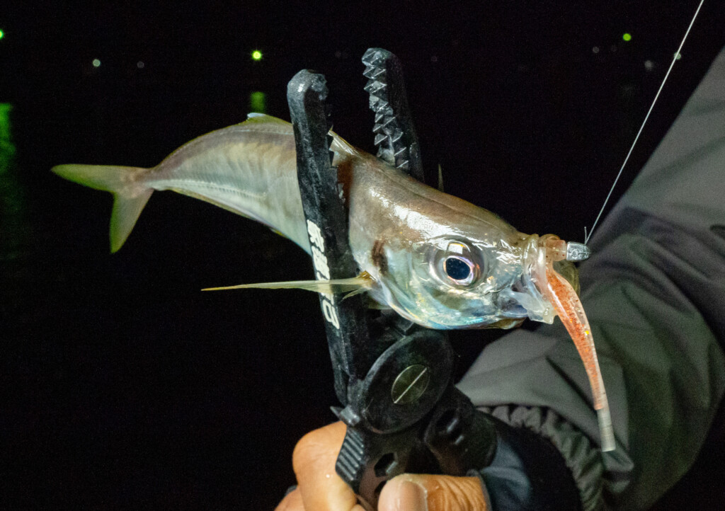 明るかろうが暗かろうがこのルールは変わりません。色々なレンジを探っていく中で、重く感じる場所があると思います。これが潮目です。そういった場所を探してみてください。澄み潮は基本的には釣るのが難しいので、可能であれば濁った場所を探されるのが良いかとは思います。どこへ行っても澄んでいる場合は、明かりのある所や潮目を探してポイントを選んでみてください。