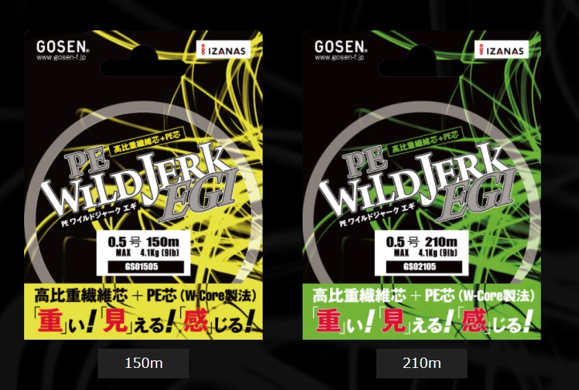 PEワイルドジャークエギには150mと210mでラインナップされています。