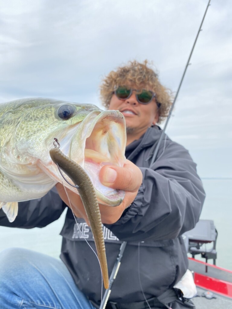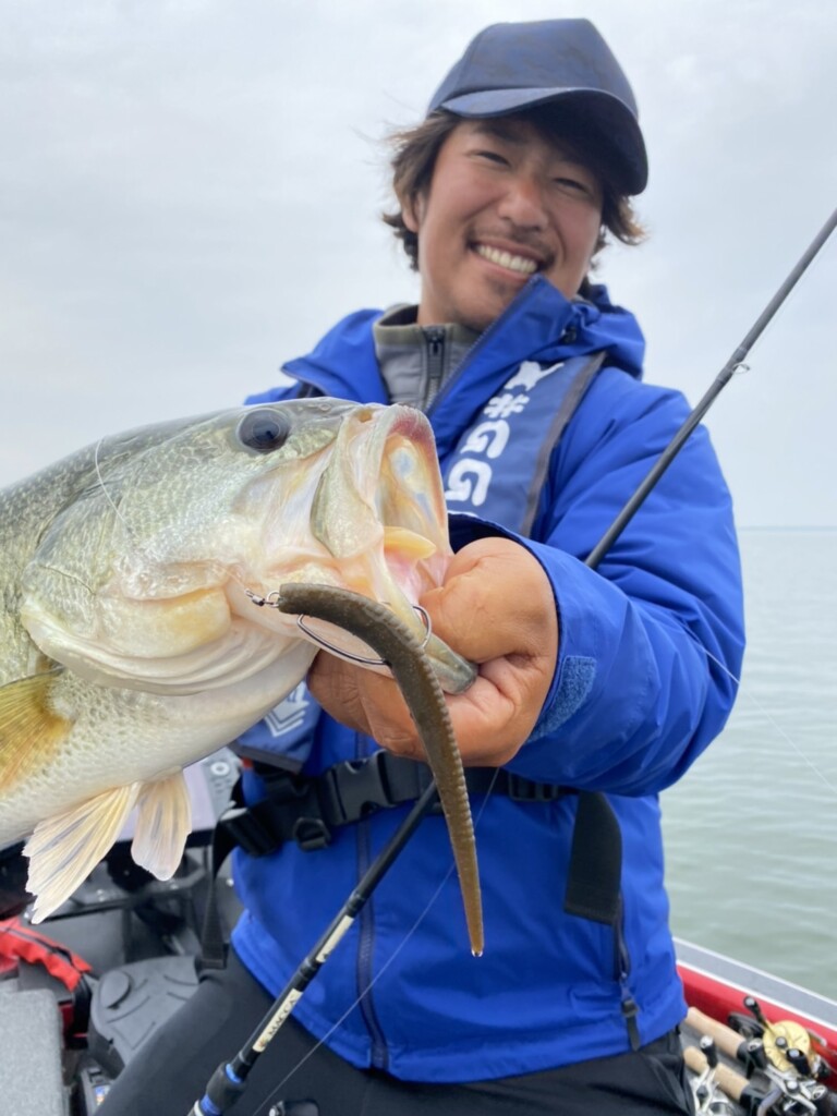 同じボトムジャークの釣りでも移動距離の少ない首振りから、ヒュンヒュンとした逃げるようなアクションへの反応が上々! いわゆる「ハスパターン」へ一気に変わりました。