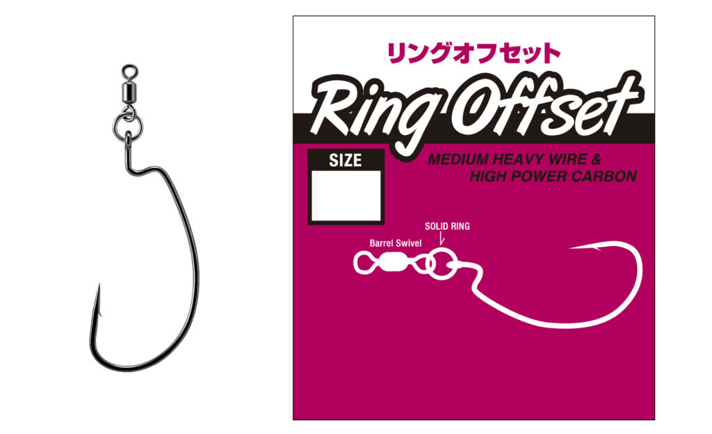 使うのは「スタッガースティック5in」に、「リングオフセット(#3/0)」。「リングオフセット モンスター(#3/0)」でもOKです。これは今のところ差はありません。「リングオフセット」を使うのは、可動域が増し、アクションのキレが良くなるから。